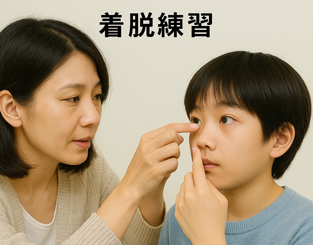 ご本人、もしくは保護者の方に、コンタクトレンズを装着したり、はずしたりする練習をしていただきます。